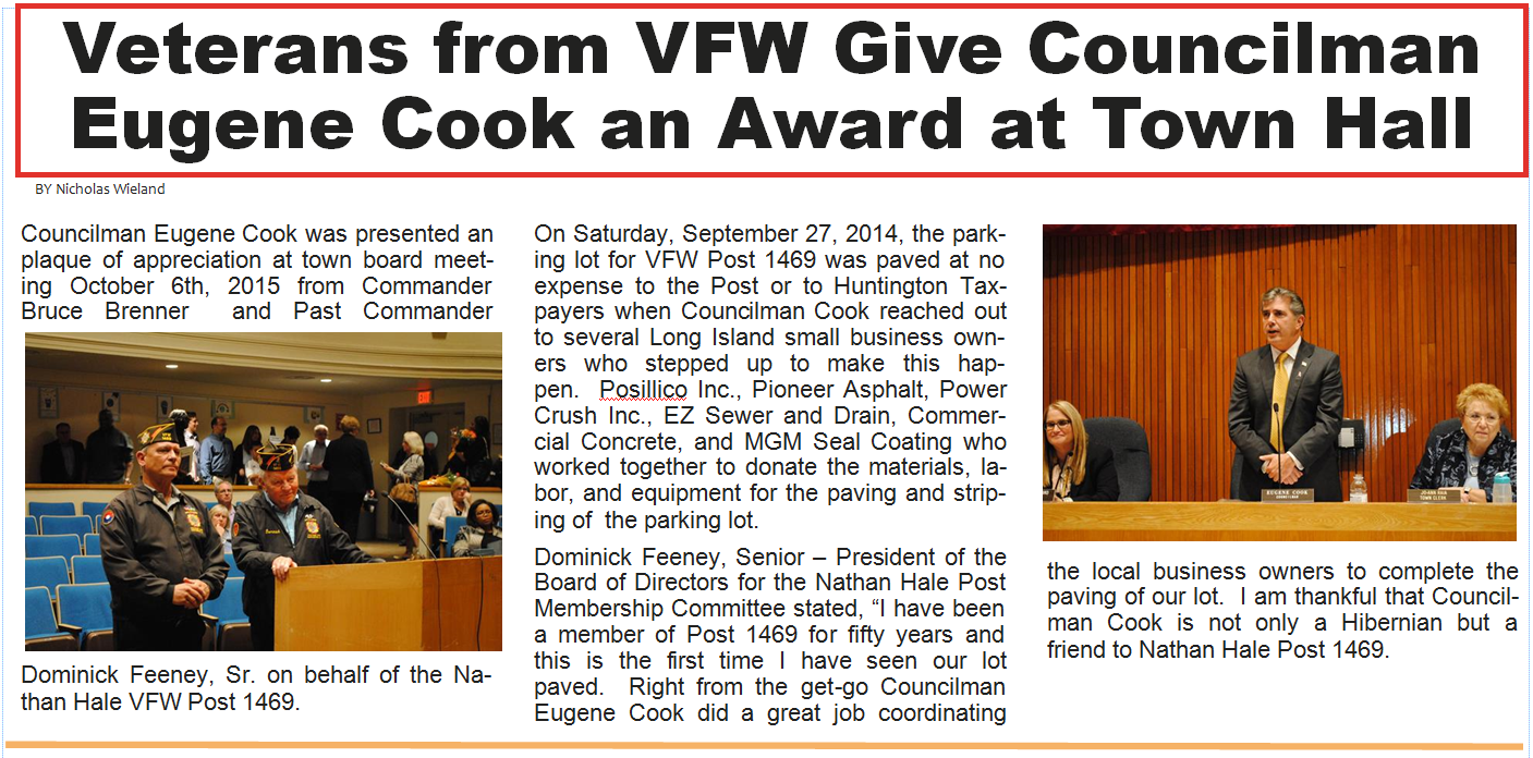 Veterans from VFW Post 1469 Give Councilman Eugene Cook an Award at Town Hall