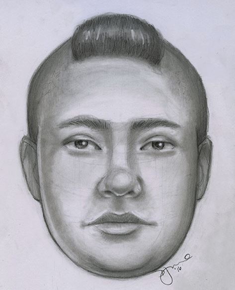The suspect was driving a small tan-colored four-door sedan. He is described as a Hispanic male in his 20s’ with a youthful appearance. He had black hair that was shaved on the sides. The center section of his hair was long and pulled in a bun.