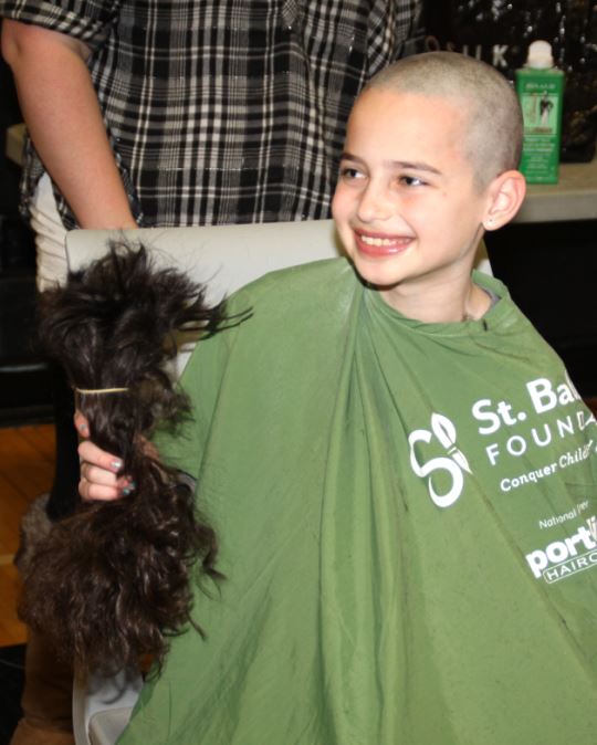 Although most shavees are male, one brave young lady, Julia Slippen, a fifth grader, shaved off her lovely curly hair, and raised over $1,000. Her mom Carolyn said, “Julia began talking about St. Baldrick’s last year when she saw posters in her school. She thought that there were a lot of kids suffering and she thought that she could help those kids.”