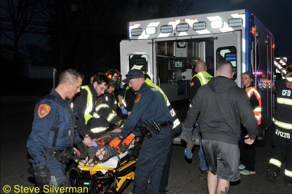 The Commack Fire Department, Commack Volunteer Ambulance Corps, and Suffolk County Police were dispatched to a motor vehicle accident Thursday night, March 31. Three occupants suffered injuries after a Mazda sedan crashed into a wooded area on Vanderbilt Motor Parkway near Shinbone Lane at around 7 p.m. Commack firefighters, EMS crews and police worked together as a team to assist with the removal and treatment of the patients. They were transported to area hospitals by Commack ambulances. Commack FD was on the scene with an engine and heavy rescue truck, under the command of Chief Andy Babajko and Assistant Chiefs Rich Myers and Paul Carnevale.