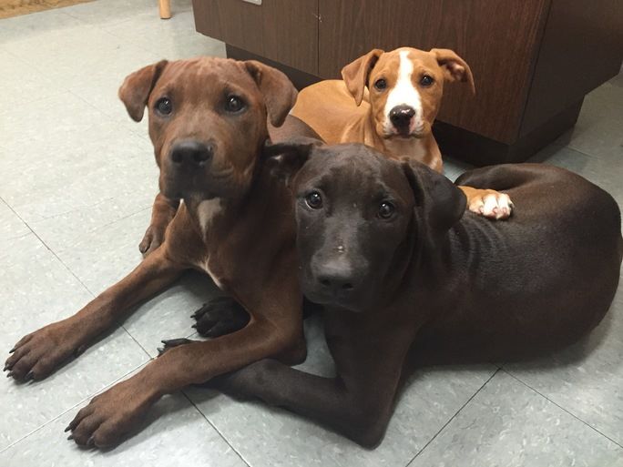 Roland, Champ and Grace, three feral puppies that had to be trapped and brought to the animal shelter. Prior to arriving at the shelter, they had never interacted with human beings. After several weeks of special care, they were ready for adoption and are now members of loving families.