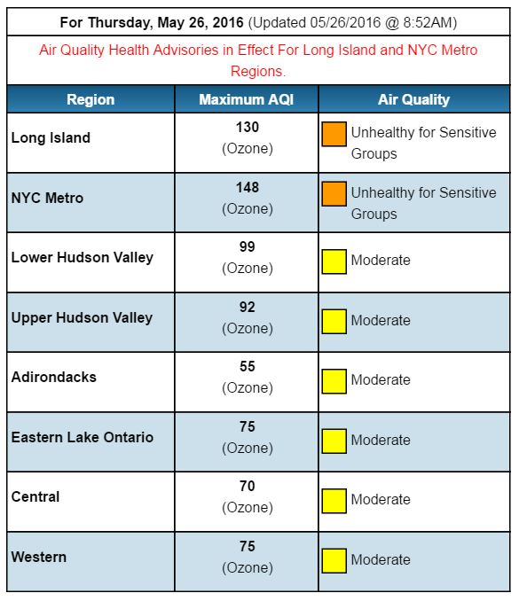 Air Quality Forecasts are available on the New York State Department of Environmental Conservation website at http://www.dec.ny.gov/cfmx/extapps/aqi/aqi_forecast.cfm