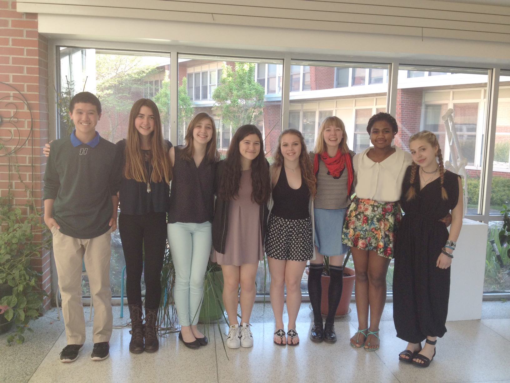 Photo Caption: Harborfields High School students participated in the Recitation portion on May 19 at Brentwood High School (from l-r) Tyler Lee, Olga Kurilina, Gabrielle Mank, Rachel Scheff, Eliza Snodgrass, Julia Spande, Sarah-Elizabeth Leveque and Sarah Katz.