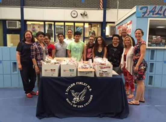 Photo above: From left to right: Susan Sherman (Co-Founder General Needs), Yenifer Aguilar, Chavez, Kenberly Villatoro Quintanilla, Randall Placido, Principal John Amato, Andy Garcia, Juliet Dempsey,Sabrina Garcia, Alex Reyes, Lonnie Sherman (co-founder General Needs), Trish Rongo (Executive Director, TWF), Ms. Kimberly Finneran (Community Club Advisor at Finley Middle School)