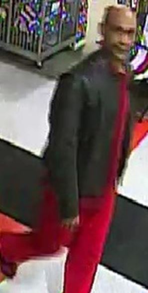 The suspect is described as a thin black male, approximately 6 feet three inches tall in his early 50’s, with short/shaven hair.