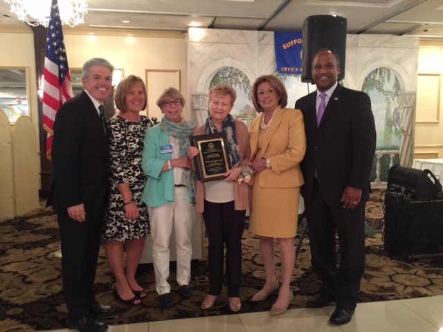 Pictured with Irene are: (l to r): Steve Bellone, SC Executive, Holly Rhodes-Teague, Director of Office for Aging, Pegi Orsino Director of RSVP, Irene, Judith Pascale, SC Clerk, DuWayne Gregory, SC Legislator.