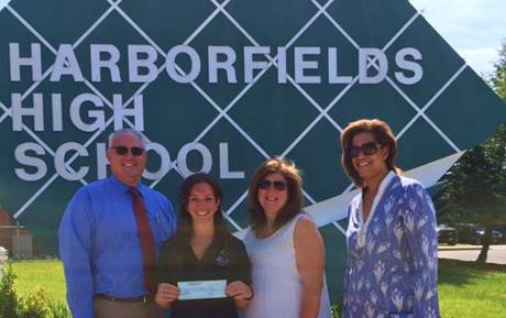 Photo Caption: (From l-r) John Valente, Harborfields High School athletic director; Rebecca Strickland, associate director of development at the Long Island Chapter of the Special Olympics; Deb Stolba, chairperson of the Harborfields Booster Club; and Rachel Spencer, chairperson of the Harborfields PTA Council Health & Welfare Committee.