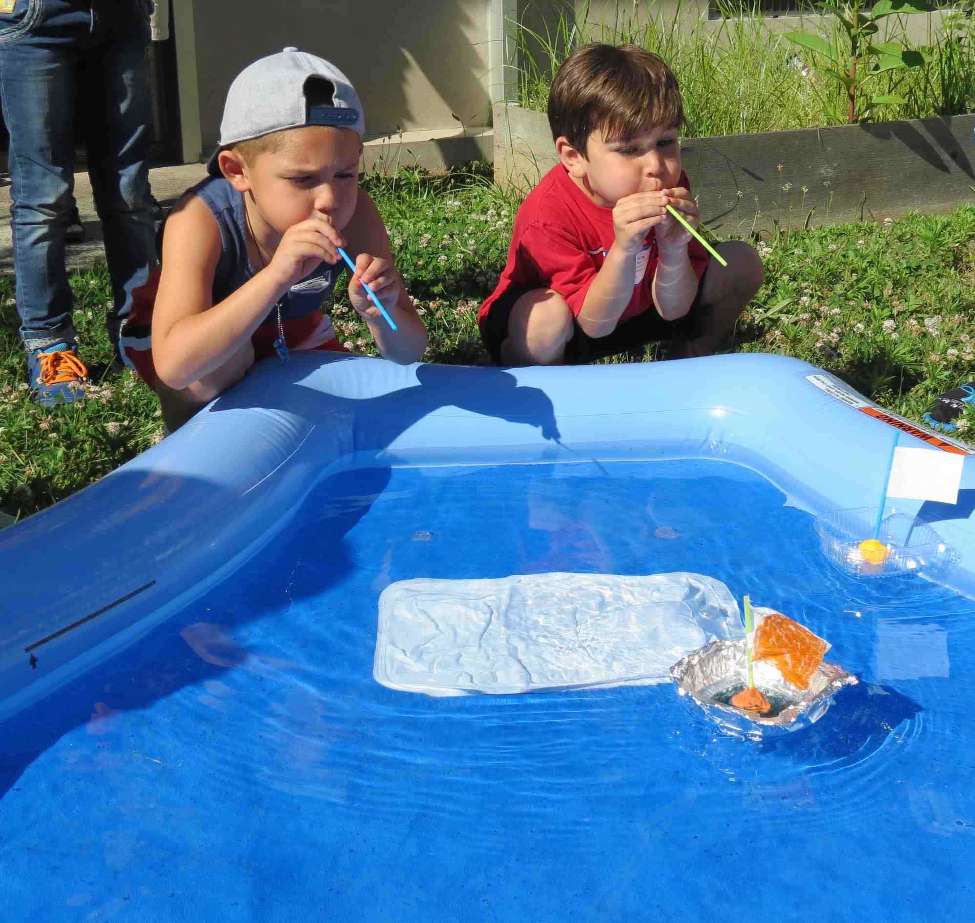 Photo Caption: Elwood students designed and built sailboats and blew through a straw to power their boats to race their peers.