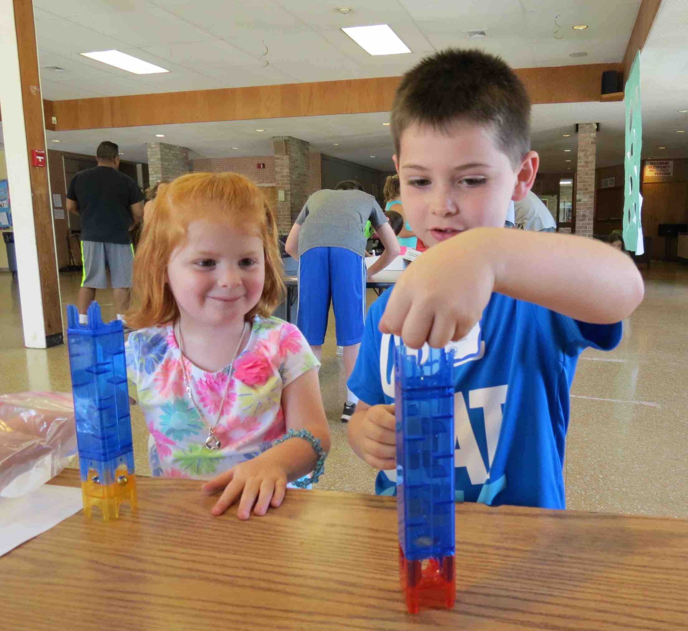 Photo Caption: Elwood students created structures using Q-Ba-Maze 2.0 blocks