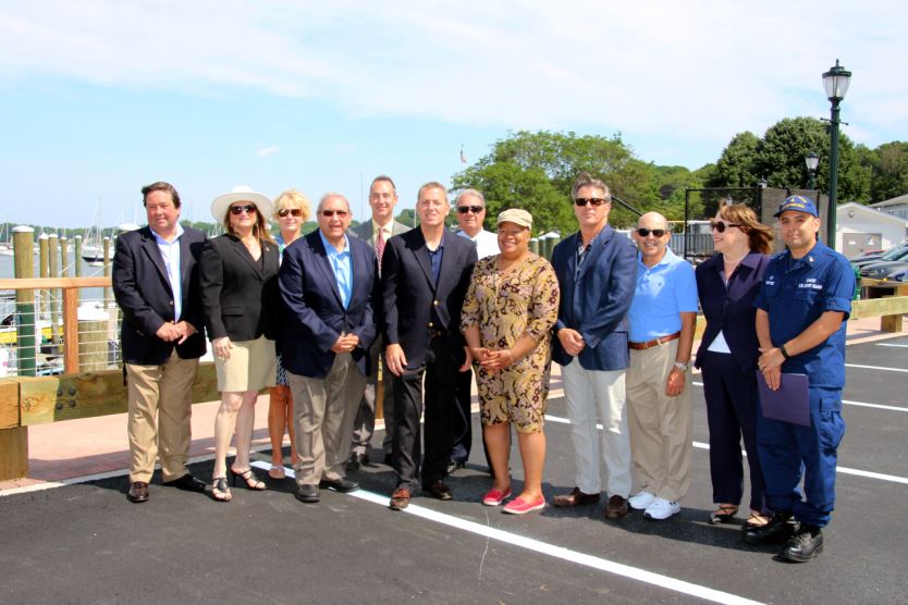 Joining Supervisor Petrone and Council Members Mark Cuthbertson, Susan A. Berland, Eugene Cook and Tracey A. Edwards at the dedication were: Asharoken Mayor Gregory Letica; Huntington Bay Mayor Herb Morrow; BMCS Tony Martinez, officer in charge of the U.S. Coast Guard Station at Eatons Neck; Stephanie Quarles, commodore of the Greater Huntington Council of Yacht and Boating Clubs; and past commodores Jackie Martin and Jon TenHaagen.