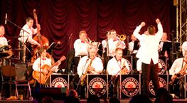 Swingtime Big Band is a 20-piece authentic swing band comprised of master interpreters of music from the Swing Era (mid-1930’s through early 1950’s), and offers an authentic music experience that you can’t find anywhere else! Performing original arrangements of Big Band Classics from the Great American Songbook, this ensemble brings to life both the style and the spirit of this music for 21st century audiences to experience in living color. Swingtime thrills concert audiences and Ballroom dancers alike with authentic recreations of the timeless swing music of such great Big Band leaders as Count Basie, Artie Shaw, Glenn Miller, Benny Goodman, Tommy Dorsey, Duke Ellington, Harry James, Woody Herman, Les Brown, Charlie Barnet and Stan Kenton, among many others.