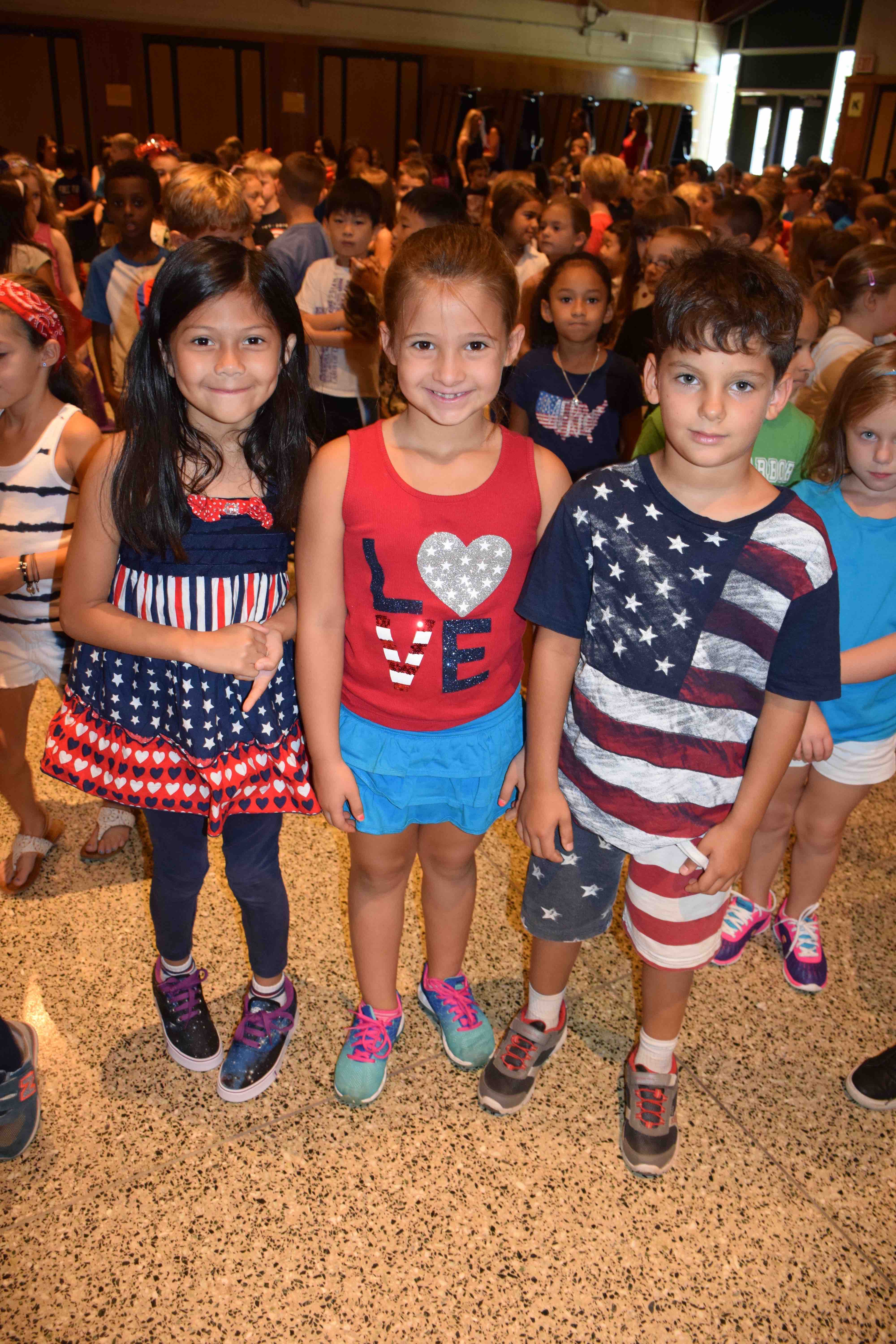 Photo 2: Students were dressed in their best red, white and blue style at Harley Avenue Primary School’s hero assembly on Sept. 12, 2016.