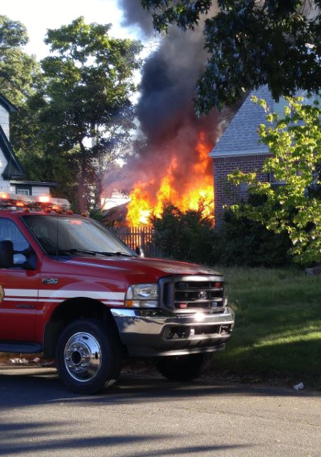 The Huntington Manor Fire Department responded to a fully engulfed detached garage fire on Fourth Avenue in Huntington Station, Friday, October 14, 2016 at about 8:30 a.m. Forty firefighters using five trucks battled the blaze and were able to keep it from spreading to an adjacent garage. First Assistant Chief Mike DePasquale and Third Assistant Chief Chuck Brady directed fire ground operations. The Huntington Fire Department assisted at the scene with a Rapid Intervention Team, and Huntington Community Ambulance for EMS. There were no injuries reported and the Huntington Town Fire Marshal and Suffolk Police Arson Squad are investigation.