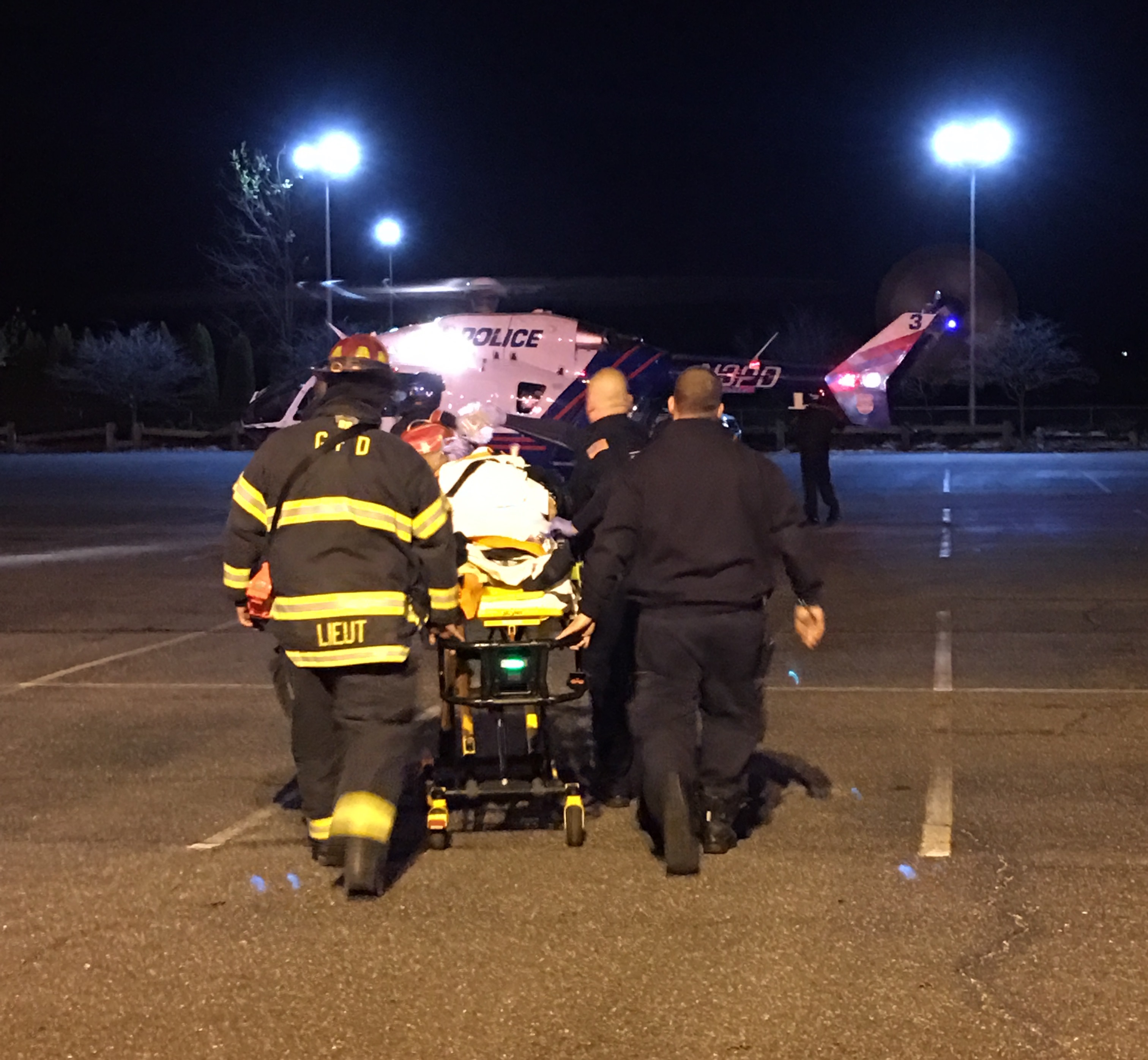 And the Greenlawn Fire Department responded to the crash with an ambulance, truck, and paramedic units under the direction of Chief Mike Bellis and Assistant Chiefs Joe Costanza and Angelo Santomauro. The Suffolk Police medevac helicopter landed at Saint Francis Church parking lot which was directly across the street from the accident scene.