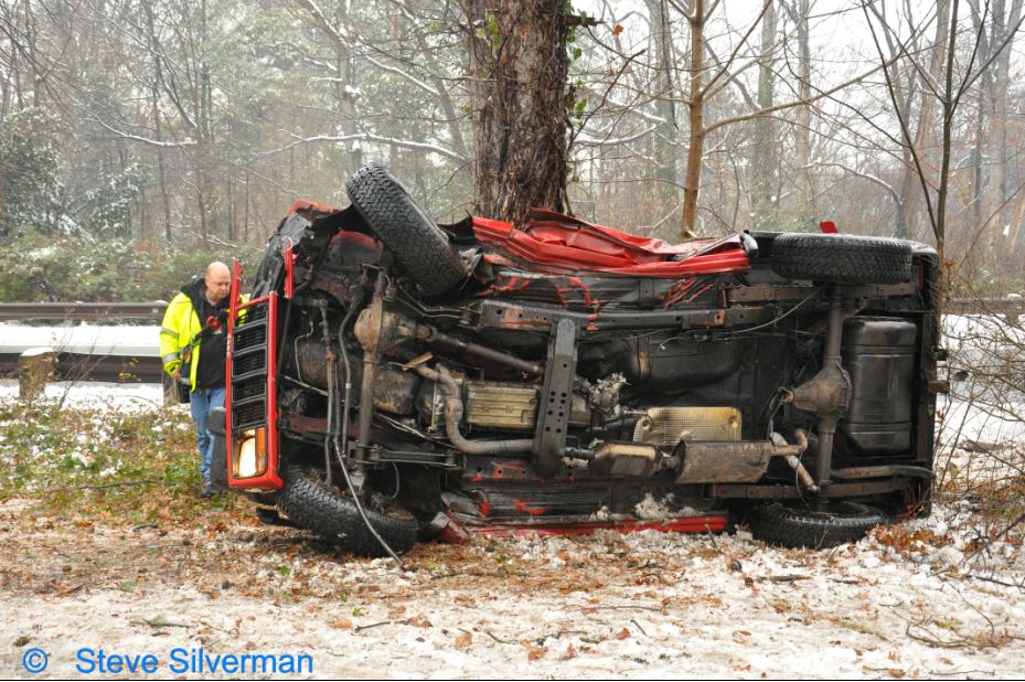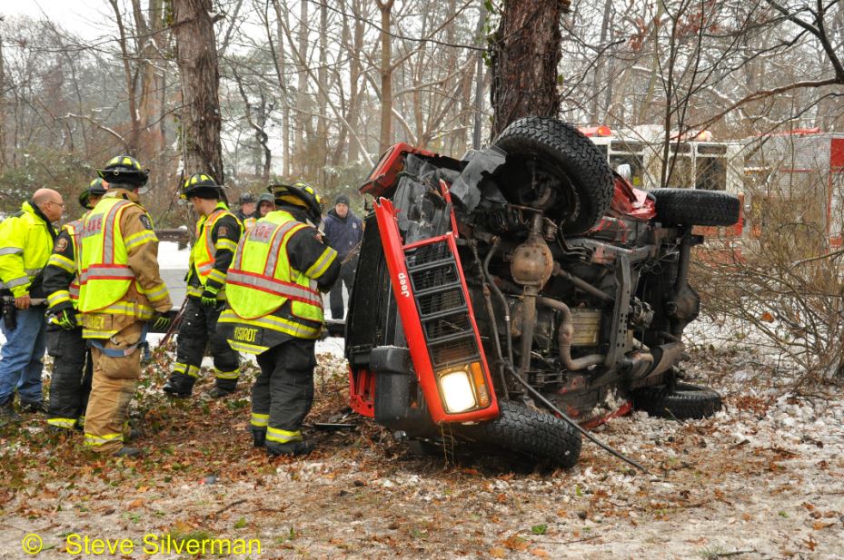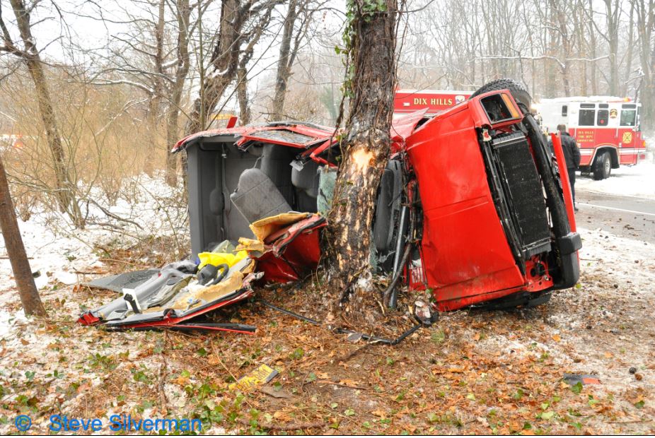 a motor vehicle accident on the eastbound Northern State Parkway east of exit 41(Wolf Hill Road) along with the Dix Hills Fire Department. Dix Hills firefighters used heavy rescue extrication tools to remove the two occupants trapped in an overturned Jeep that struck a tree.