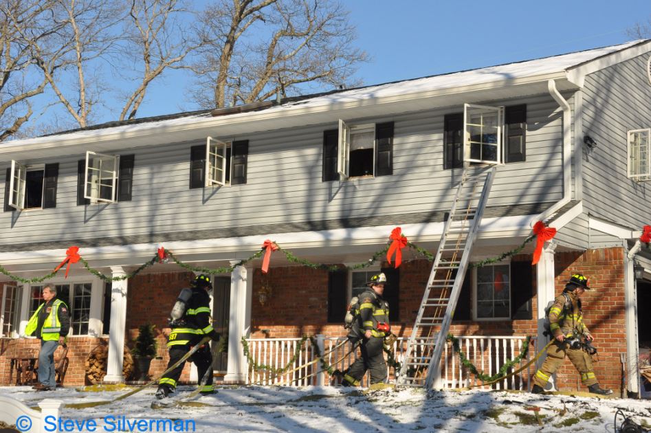 At the conclusion of the Annual Inspection Ceremony for the new officers of the Dix Hills Fire Department on January 15, 2017 firefighters were alerted to a house fire at about 12:35 p.m. on Colby Drive. Still in their dress uniforms, 65 firefighters responded with six trucks and four ambulances.