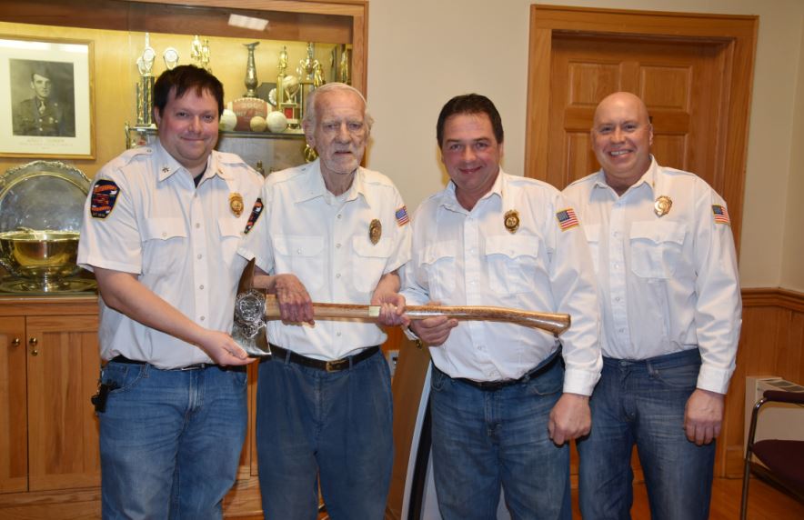 The Centerport Fire Department recently honored Ex-Chief William “Bill” Wamp for his 65 years of dedicated service. Wamp was presented with an engraved firefighter’s axe and an anniversary cake that was shared by the membership. Wamp joined the Centerport Fire Department in 1952 and was assigned to Engine Company Two. He served as Company Lieutenant and Captain, and was later elected to Assistant Chief and then Chief of the Department in 1979 and 1981. Wamp was also a 20-year member of the Centerport Rescue Squad. Under Chief Wamp’s leadership, the Department battled a massive fire that destroyed Linck’s Log Cabin in 1981, a landmark restaurant for over 50 years that closed a year and a half earlier.