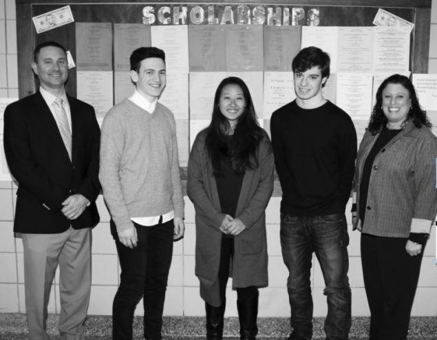 In photo above, from left to right: Director of Guidance Jonathan Macaluso, Zach, Christine, Josh, and Principal Leslie Boritz.