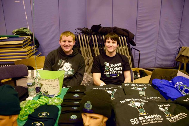 Photo above Seniors James Rowan and Alex Door sold apparel at the district’s St. Baldrick’s Day event.