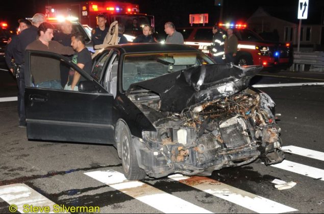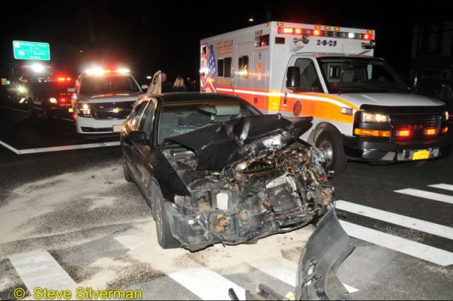 The Melville Fire Department and Suffolk Police responded to a three-vehicle crash on Walt Whitman Road and Arrowood Lane in Melville on Friday night, April 14, 2017, at about 8:25 p.m. Four people suffered injuries, two serious, and were transported to Huntington and Plainview Hospitals. The Dix Hills and Plainview fire departments assisted with additional ambulances. The Melville Fire Department dispatched an engine, two ambulances, paramedic, first responder and fire police, under the direction of Chief Jason Bernfeld and Assistant Chiefs David Kaplan and Bill Schmitt.