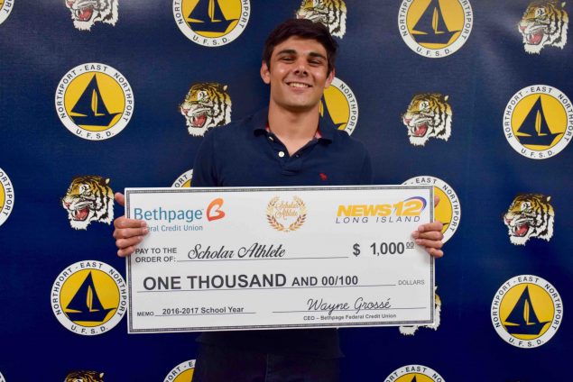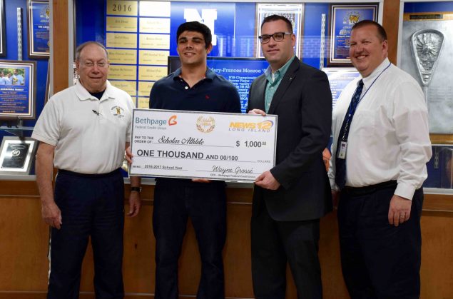 Northport High School senior Frankie Stola in the Northport-East Northport School District was named a News 12 Scholar Athlete Winner on April 18. The baseball and football player was presented with a $1,000 scholarship from the Bethpage Federal Credit Union.