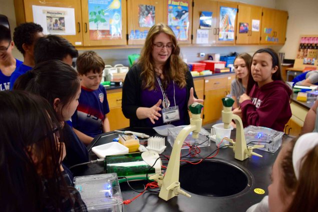 1) Elna Carrasco-Gottlieb from the Cold Spring Harbor DNA Learning Center showed students how to conduct their DNA lab.