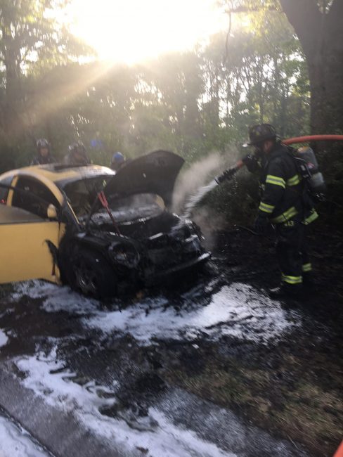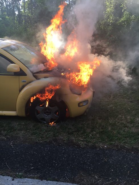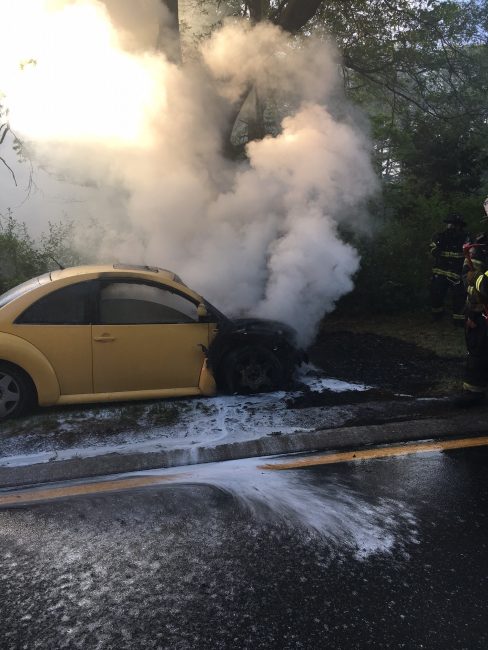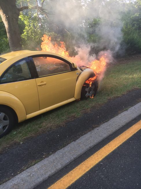 The Melville Fire Department was dispatched for a car fire on the Northern State Parkway in the eastbound lanes between exits 40 and 41 (Route 110 and Wolf Hill Road) on Wednesday, June 14, at about 6:55 p.m. Firefighters responded with an engine and heavy rescue truck, and extinguished a working fire in a Volkswagen. The driver suffered minor cuts and declined medical assistance. Units were under the direction of Assistant Chiefs David Kaplan and Bill Schmitt.