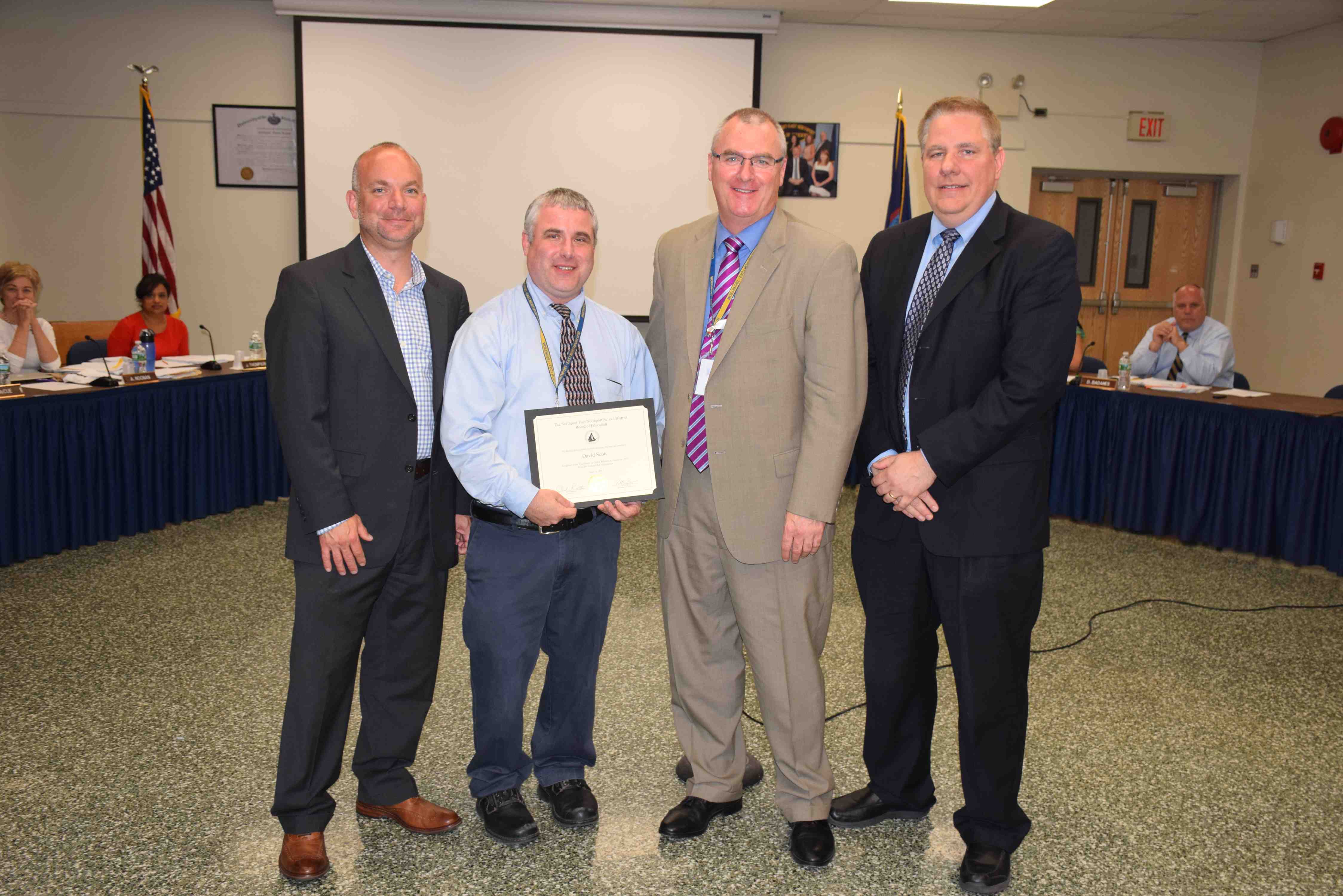 2) Northport High School Social Studies teacher David Scott received the Federal Bar Association’s Excellence in Civic Education award at the June 15 board of education meeting. From left: District Chairperson of Social Studies Sean Hurley, Scott, Superintendent of Schools Robert Banzer and Board of Education President Andrew Rapiejko.