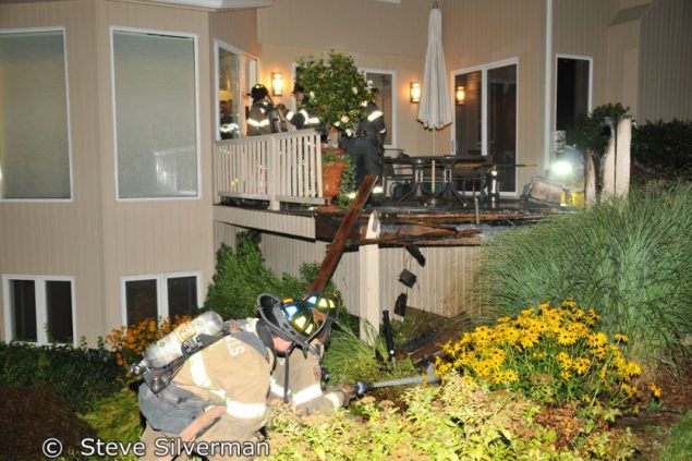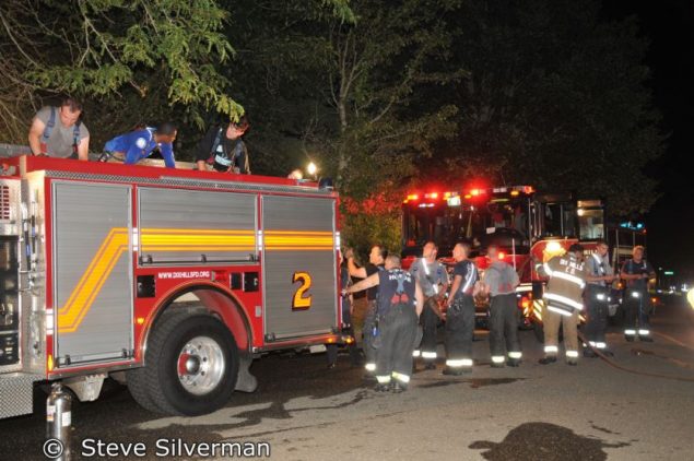 The Dix Hills Fire Department responded to backyard deck fire caused by a gas barbecue at a home on Scenic View Court on Thursday evening, August 3, 2017 at about 11:05 p.m. First arriving Assistant Fire Chiefs Alan Berkowitz and Joe Williamson used their fire extinguishers to knock down the natural gas-fed fire. Trucks soon arrived on the scene and firefighters had the blaze under control within 15 minutes. Due to the quick action of firefighters, the damage was contained to the barbecue and deck with no extension to the home.