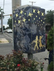 The Town of Huntington’s efforts to bring art to public streets continues, with works installed on four traffic signal boxes in the past few weeks – including the first on a signal box in Huntington Station — three more scheduled by the end of the month, another three in the pipeline for installation by the end of September and a resolution to add 10 more scheduled for consideration at the August 15, 2017 Town Board meeting.