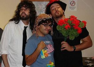 (Above: Carl Nehring, Jordan Hue and Evan Donnellan sprint through all of Shakespeare’s plays. Carriage House Players photo.)