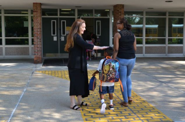 Primary School Principal Elissa Millan greeted incoming students on their first day.