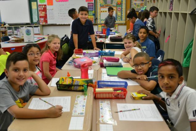 Ms. Vignoli’s fourth-grade class filled out “Get to Know You” questionnaires on the first day of school at James H. Boyd Intermediate School.