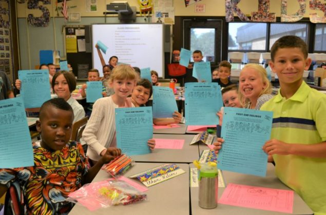 At Thomas J. Lahey Intermediate school, students were excited to be back,and to participate in first day activities such as filling out “first day feelings” worksheets and “welcome back to school” packets. They also jumped into projects such as writing letters to veterans in partnership with the Honor Flight Network.