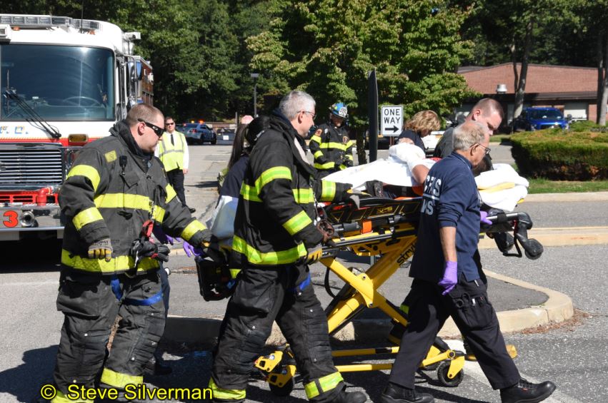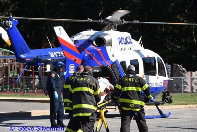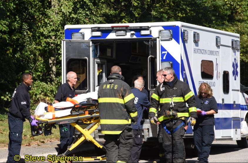 The Huntington Community First Aid Squad, Huntington Manor Fire Department and Suffolk Police teamed up to assist a 40-year-man whose hand was partially severed while operating a power saw on Saturday morning, September 9, 2017, at about 9:45 a.m., at a home on Floral Avenue in South Huntington.