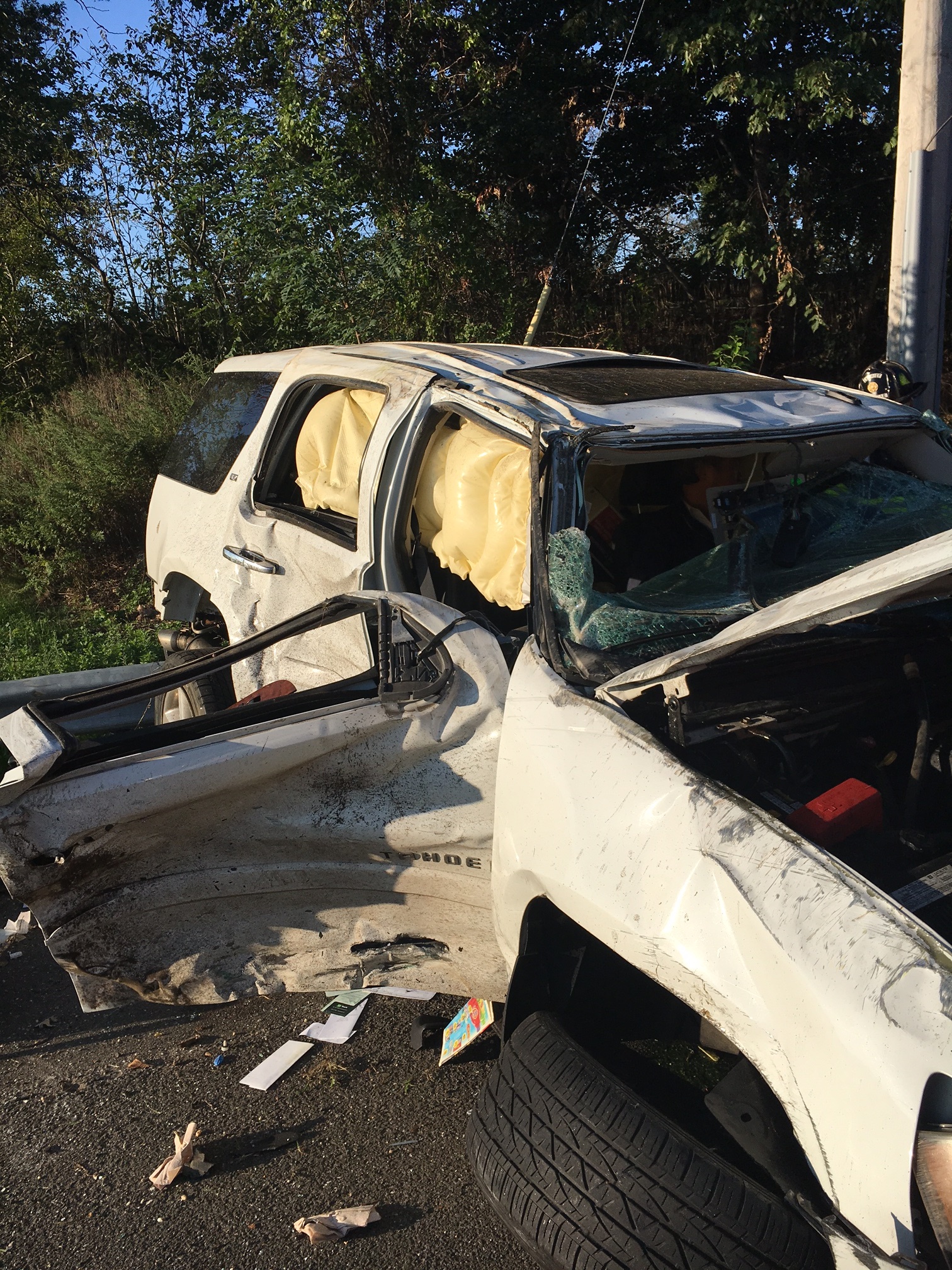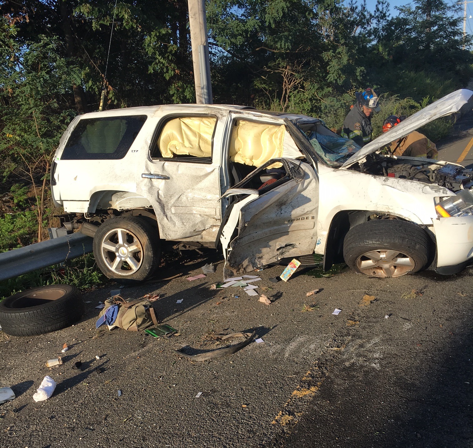The Melville Fire Department responded to a two-vehicle collision that injured three people on Sunday morning, September 10, 2017, at about 7:40 a.m. on Broad Hollow Road and the North Service Road. The crash involved two SUV’s with one overturning several times and trapping the driver.