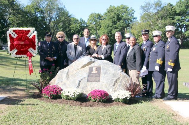 Supervisor Frank P. Petrone, members of the Town Council and Town Clerk Jo-Ann Raia joined with the Huntington Manor Fire Department September 9 in renaming Depot Road Park after Richard Wm. Holst, who suffered a fatal heart attack while responding to a fire near the park exactly eight years ago.
