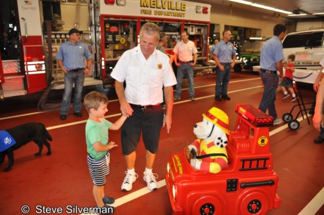 The Melville Fire Department recently held their annual Open House at fire headquarters on Sweet Hollow Road. The event brought several hundred visitors that learned about fire prevention and safety, and got to see actual firefighting and rescue demonstrations by Melville’s bravest. There were free raffles and prizes for smoke alarms and fire extinguishers, snacks served by the Junior Explorers, and an inflatable bounce house for the kids. Special thanks to the Suffolk County Volunteer Firefighters Burn Center and Love on a Leash Therapy Dogs for their participation. “The Open House is a great opportunity for our residents to learn about our Department, and provide them with an educational and enjoyable experience,” said Chief Jason Bernfeld.