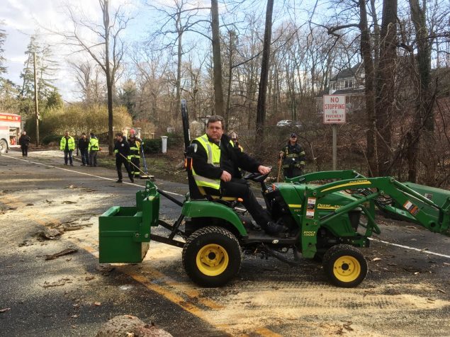 Centerport Deputy Chief Dr. Jack Geffken assisted clearing the tree with the use of his compact bucket loader. Two Centerport fire engines and crews were dispatched and under the direction of Assistant Chiefs Rich Miltner and Andy Heglund.