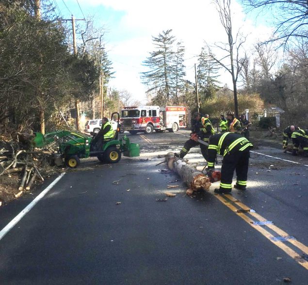 Firefighters from the Centerport Fire Department were called out on a windy Christmas morning 2017 for reports of a tree down across Route 25A near Lone Oak Drive at about 11:05 a.m. The large tree snapped off and struck electrical lines, causing a power outage in the area. Firefighters used chainsaws to cut up the tree and removed it off the roadway.