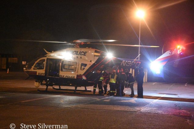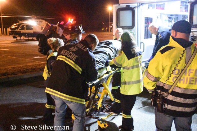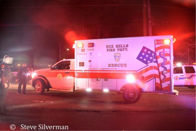 The Dix Hills Fire Department responded for a pedestrian struck by a car on Wolf Hill Road and Caledonia Road on Wednesday night, February 14, 2018 at about 9:48 p.m. Dix Hills Rescue Squad members assisted the male teenager who suffered serious injuries. The patient was transferred to a Suffolk Police Medivac helicopter that landed at the nearby Signal Hill Elementary School, and airlifted to Stony Brook University Hospital. Under the command of Chiefs Tom Napolitano and Alan Berkowitz, an engine, ambulance, paramedic unit, first responder and three heavy rescue trucks were dispatched to the scene. Story and Photos by Steve Silverman![]()