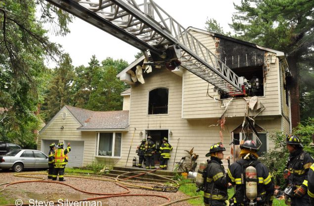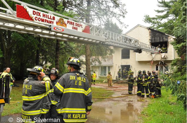 Quick action by the Dix Hills Fire Department knocked down a bedroom fire in a home on Carll’s Straight Path on Saturday, August 4, 2018. Firefighters responded to the alarm at 1:06 p.m. and found a fully-involved bedroom fire on the second floor. First arriving crews began an aggressive interior attack on the blaze which was brought under control within 15 minutes. Dix Hills FD was assisted by the Commack, Deer Park and Bethpage FD’s and Commack Ambulance at the scene, with Melville FD providing standby coverage. Sixty firefighters and rescue personnel were on scene with eight trucks, three ambulances and paramedic responders. The homeowner and her two daughters escaped the blaze and were transported to Huntington Hospital with smoke inhalation by the Dix Hills Rescue Squad. The family dog also safely escaped the blaze. The fire was confined to the bedroom with smoke and water damage to the house. The cause of the fire is under investigation by the Huntington Town Fire Marshal and Suffolk Police Arson Squad. Suffolk County Fire Rescue Coordinators were also dispatched to the scene for assistance.