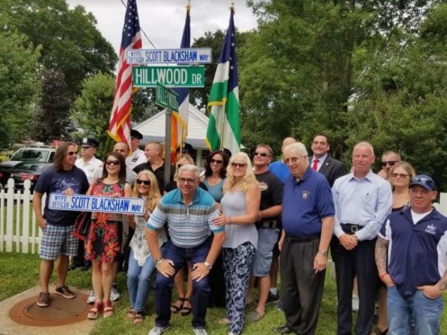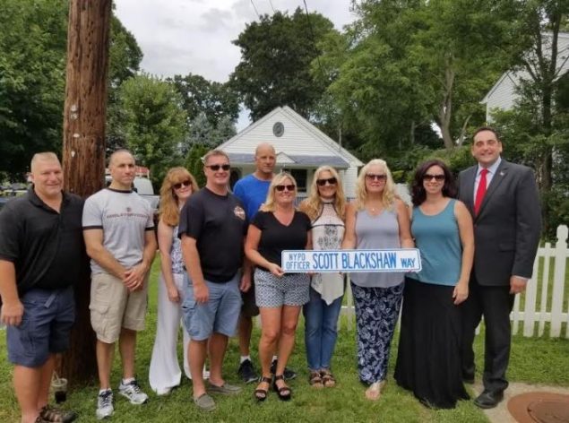 “Although a modest gesture, this street naming will commemorate NYPD Police Officer Scott Blackshaw’s sacrifice, letting it be known that we will never forget the unsung heroes that answered the call that day,” said Senator Carl Marcellino.