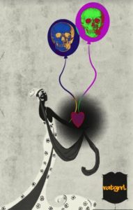 Students grades 6 – 12 are invited to submit art inspired by the Halloween theme. “I love spooky, but not horror,” says juror Jessica “Ratgrrl” Valentin. “I blend my work with spooky themes, color, and sweetness so I can deal with the things that scare me. How do you face the things that scare you?”