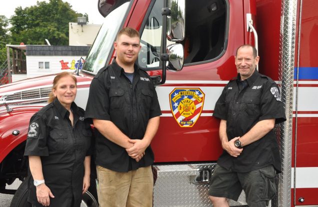Pictured: Melville Rescue Squad EMT Sue Rao, Melville Firefighter Dave Schneider, and Melville Firefighter EMS Dr. David Kugler. Photo by Steve Silverman