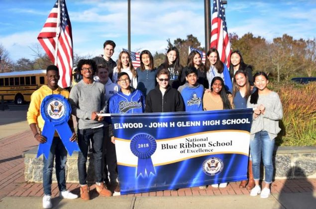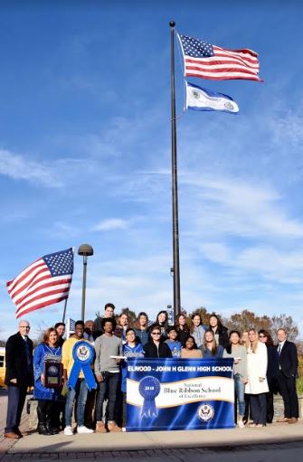 The Elwood-John H. Glenn High School community held a special ceremony to celebrate the school’s National Blue Ribbon title on Nov. 15. A flag, announcing the title awarded by the United States Department of Education, was raised in front of the school.