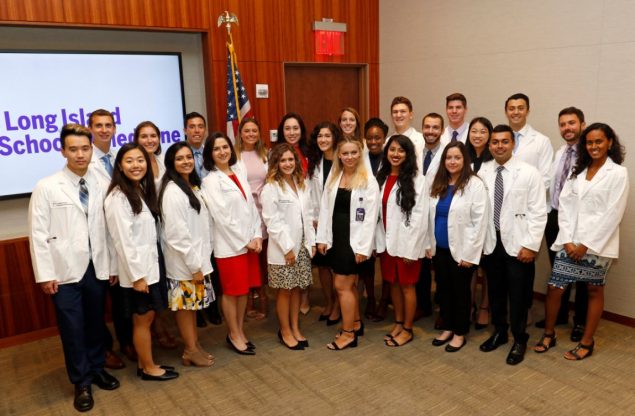 The newly accredited NYU Long Island School of Medicine (NYU LISOM) opened its doors to its first class of students this week, welcoming a new generation of aspiring physicians in an inaugural “White Coat Ceremony”—an emotionally moving rite of passage for students entering medical schools the world over. Of note, this year’s ceremony marked the official kick-off of New York University’s flagship medical school on Long Island—a school offering full-tuition scholarships with an innovative, accelerated three-year curriculum exclusively devoted to training primary care physicians.