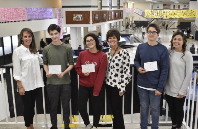 Pictured from left to right, School Counselor Amanda Cuiffo, Teddy Krantz, Rosalie Sarnataro, School Counselor Mary Ann Powers, Marcos Guerrero and School Counselor Laura DeSantis.