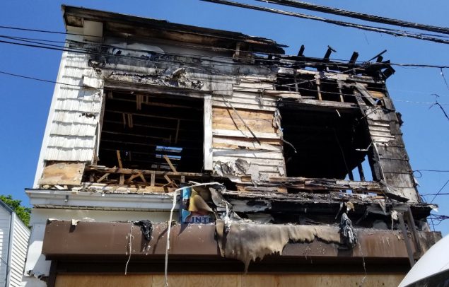 Four residents of the rear apartment, a 6-year-old child, a 15-year-old, and their parents were trapped on the roof. An adult female resident of the front apartment was still inside the building on the second floor. The ground floor was unoccupied.