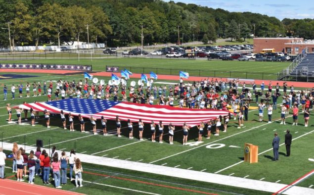 Photo caption: Northport High School band displays an American flag during the Sept. 11 remembrance ceremony.